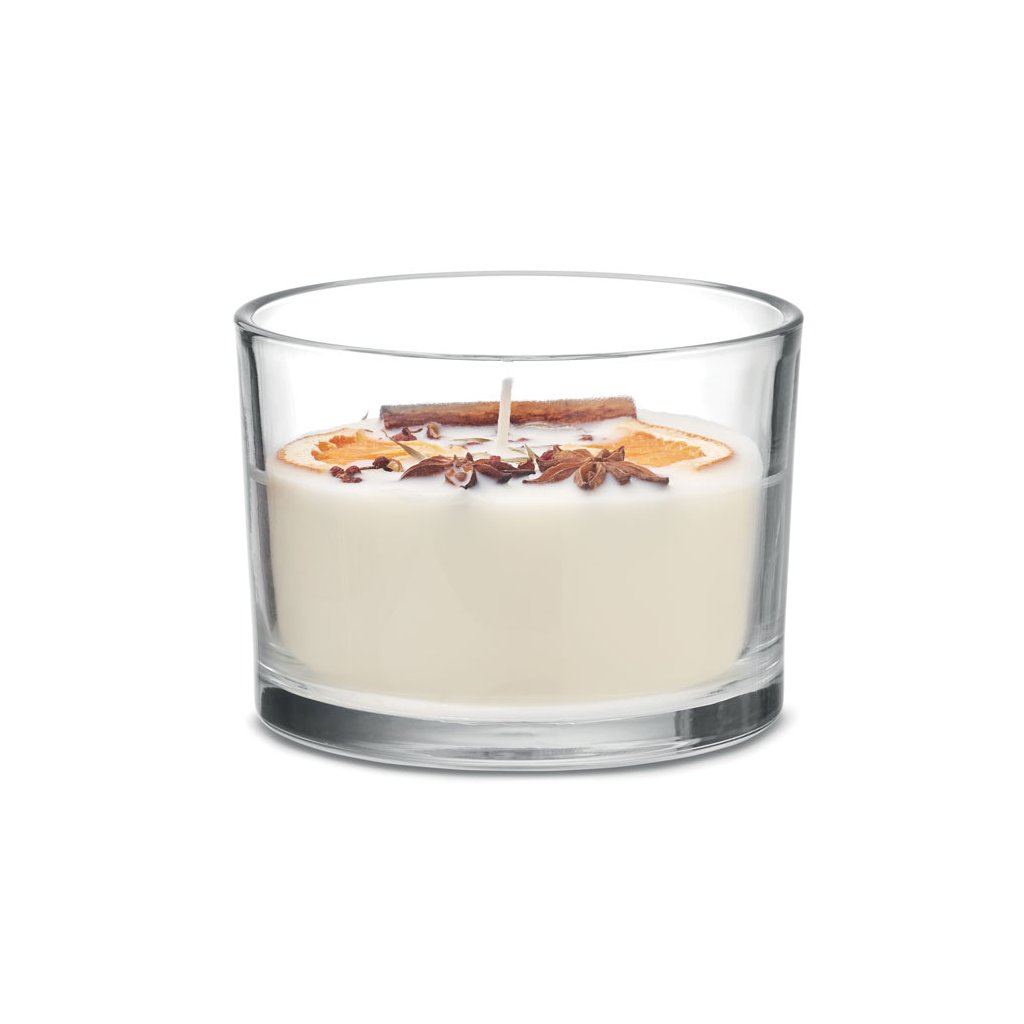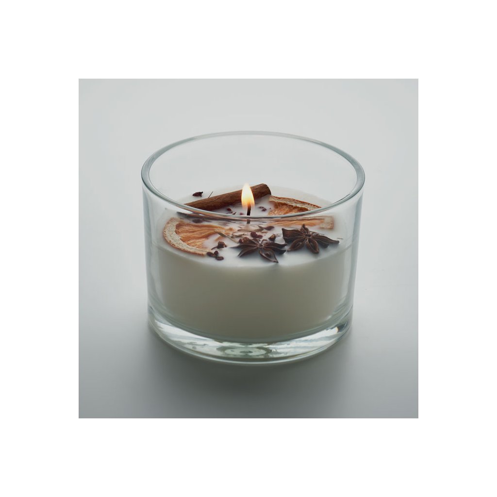Vosková sviečka na rastlinnej báze s vôňou škorice a citrusov